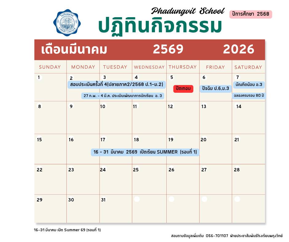 ยินดีต้อนรับ เข้าสู่เว็บไซต์โรงเรียนผดุงวิทย์ สอบถามข้อมูลเพิ่มเติม 056 - 701107
